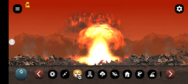 3、核弹的爆炸最为直观,腾升的蘑菇云,直接将一切夷为平地,背景也换成了鲜艳的血红色,末日来临一般