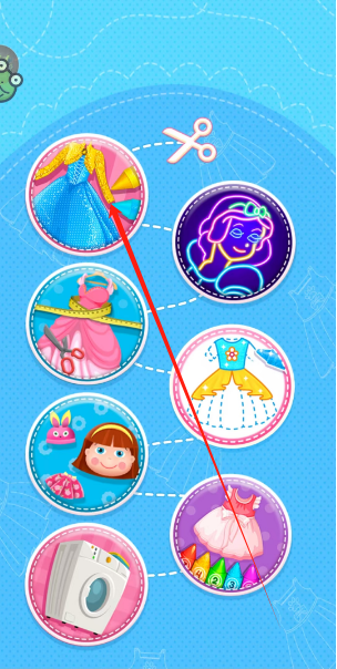 游戏的玩法简单而有趣,你可以选择任意一个你喜欢的图样点击进去,就可以使用工具为图画进行上色,比如颜料桶可以直接填充整块闭合区域的颜色,画笔可以勾勒出你想要的花样,同时还有丰富可爱的贴纸花样可以让你装扮你的闪耀公主裙,让每一副画都变得独一无二!除了基础的涂色玩法,游戏内还有各种其他的小游戏模式供你选择,你可以在游戏里剪裁衣服款式,亲手打造属于你的闪闪公主裙,也可以为游戏中其他可爱的角色进行装扮,同时你还可以进行洗衣小游戏,挣取更多的金币,就能够解锁更多的精美物品!