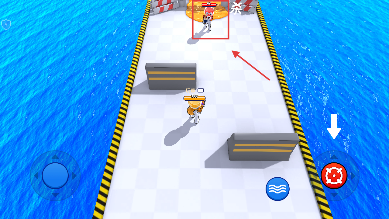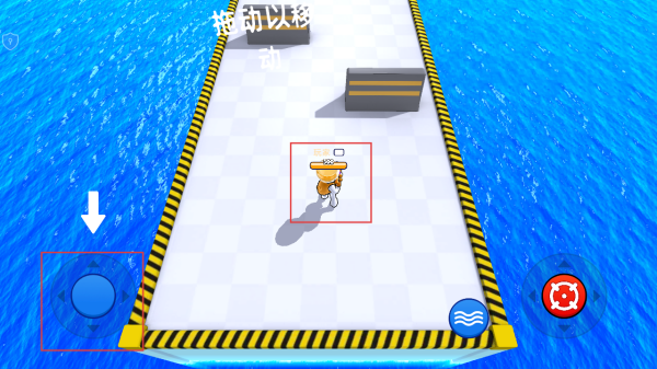 1、进入游戏后,通过拖动左下角的蓝色虚拟摇杆控制角色移动。