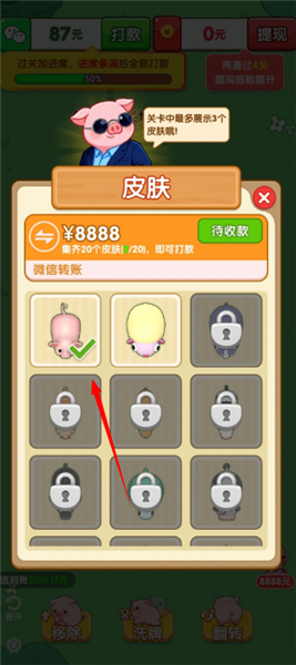 3、还能在游戏中收集各种猪猪的皮肤图鉴