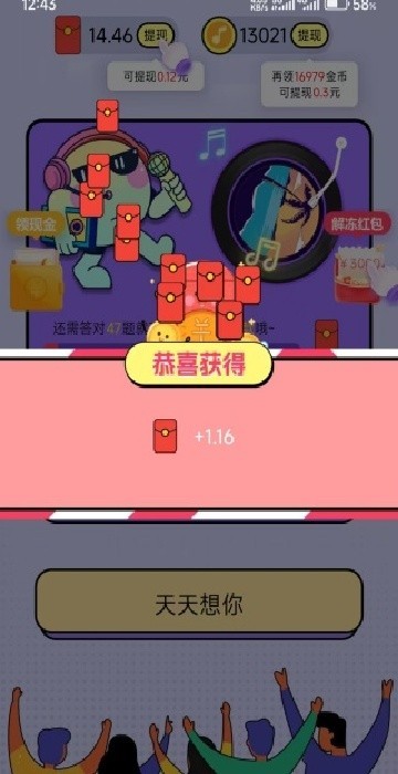边听歌,边赚钱!《猜歌捞金王》是一款能领大量福利的休闲红包游戏。海量关卡、丰富曲库,猜歌闯关就能轻松赢红包!操作简单,画风欢乐,是您放松心情、收获惊喜的绝佳选择。快来下载,开启你的欢乐捞金之旅!