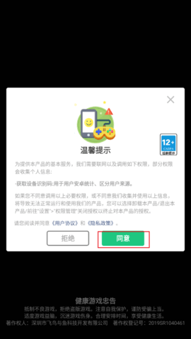 1、打开手机上的小兵传奇游戏进入主页,首次来到游戏需要阅读隐私政策,点击同意进入。