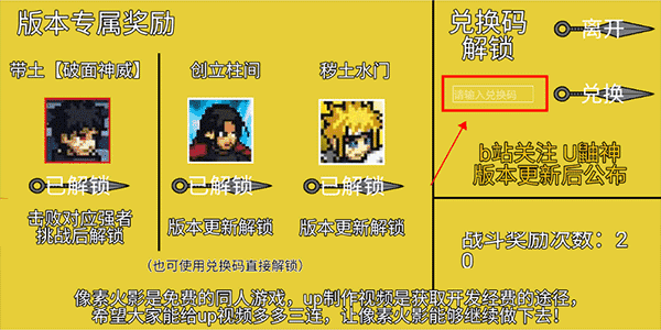 3、本版本更新的巅峰带土“破面神威”可以点击“奖励”,在右侧输入上方兑换码即可获取;