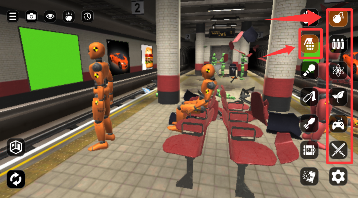 4、右边多少武器栏,点击炸弹扔出去就可以拆家了。