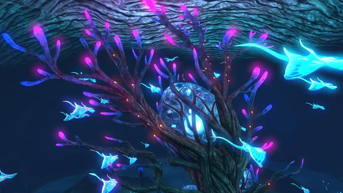 洞穴系统蜿蜒在海床下方,从幽暗幽闭的通道到被生物发光生命和炽热熔岩流照亮的洞穴。探索海底世界,但要注意氧气含量,并注意避免潜伏在黑暗中的威胁。