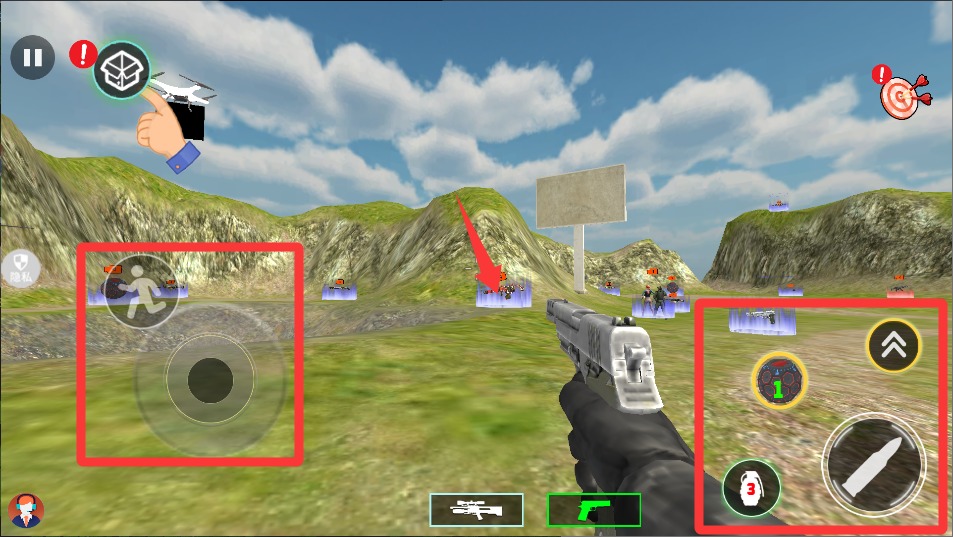 4、左边划屏控制移动,右边点一下就能开枪,打的时候找掩体躲着,别硬刚,慢慢推进最稳妥。