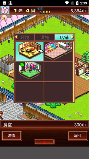 6、点击店铺,可以建造食堂、游艺机、小卖铺等等。
