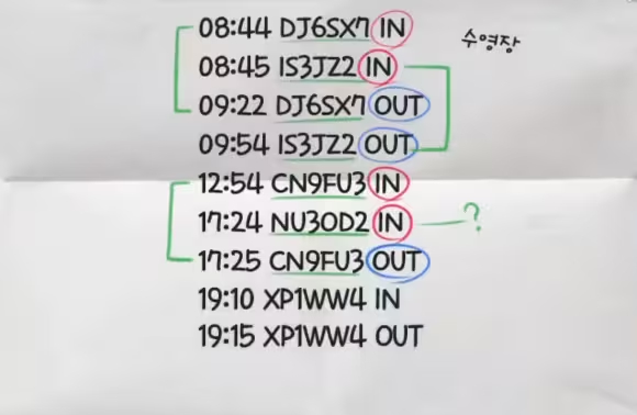 接下来,桥本通过猜想与逆推,得出了他对于【游泳池的入口记录】的解读:8:44奏用自己的学生手册进入,8:45知惠袋用自己的学生手册进入,9:22响用奏的学生手册进入,但留下了OUT的记录,导致众人一开始的错误,而后9:54奏用已经死亡的知惠袋的学生手册离开,准备作案工具后于12:54用自己的学生手册再次进入游泳池,进行了约五小时的分尸工作,17:24响离开并将消毒告示牌推到入口里侧,17:25奏整理好告示牌后从游泳池离开,二人均使用了自己的学生手册且携带有分尸。