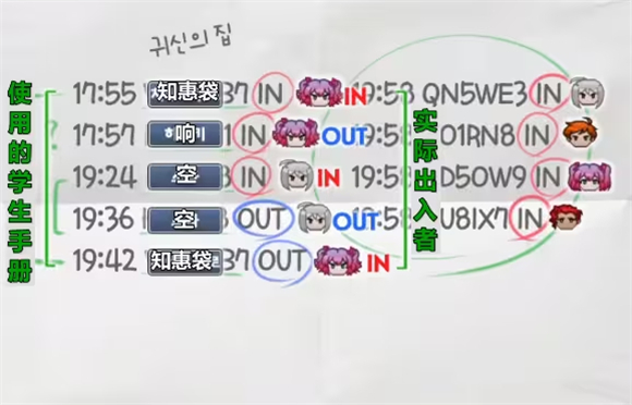 为了进一步指控奏,桥本提出“所有的入口记录都是可以伪造的”的观点,理由是“进出时可以刷别人的电子学生手册”。这确实不违反校规。桥本也在到达岛上的第一天借了虹上的电子学生手册进行验证。