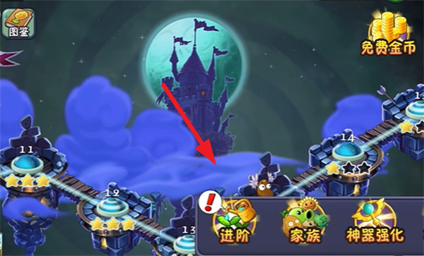 2、进入进阶界面后就能看到自己目前有哪些植物,选一个想升的,比如豌豆射手。
