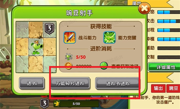 5、植物升完之后就能获得新能力,基础属性也跟着往上涨。