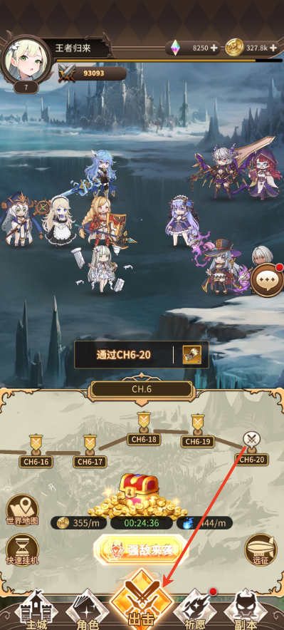 3、接着玩家布置战斗阵容点击“出击”进行战斗