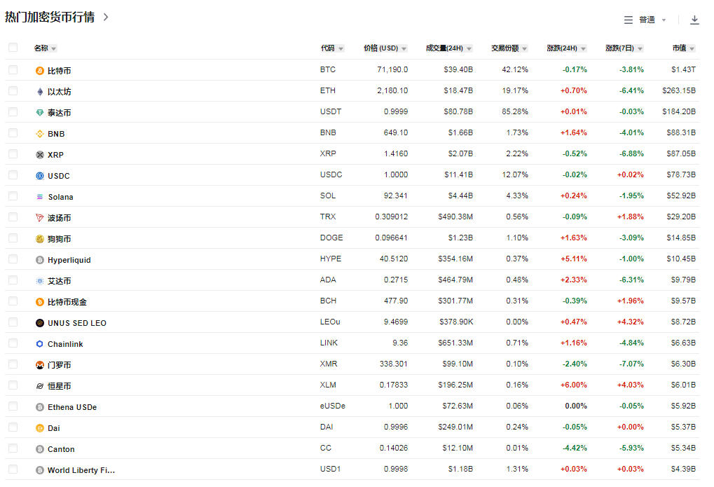 1. 头部币种:BTC 稳中有升,ETH 表现强势