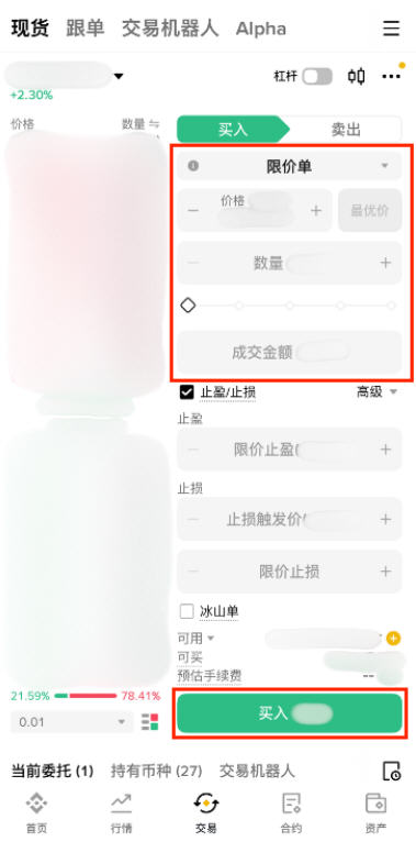 默认订单类型为限价单。如果切换到【市价单】选项,即可按当前市场价即时交易。