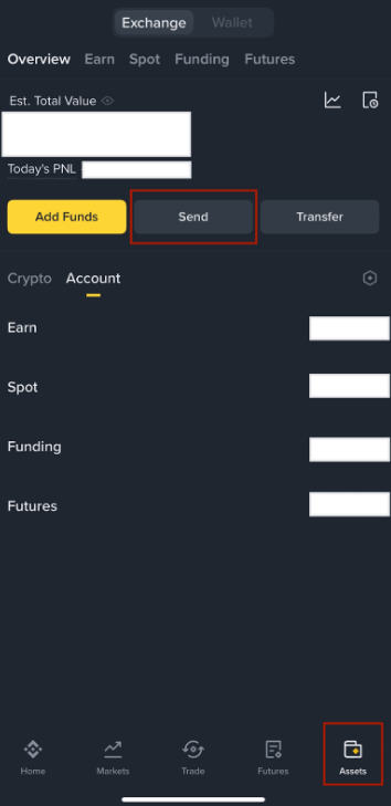 1. 登录币安 App,点击【资产】-【转账】。