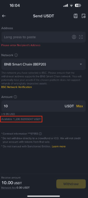 3.粘贴提现地址,并选择网络。