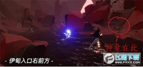 从起点管道进入后,沿右下方向前进,就能在一处隐蔽的石壁旁找到神坛。