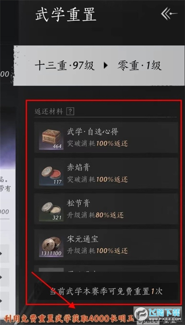利用武学重置返还机制,配合赛季挑战,可一次获得: