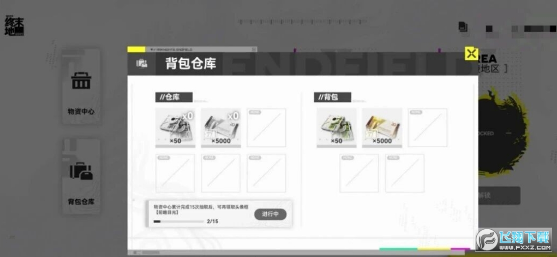 物资中心抽卡可以获得5星武器,经验书,武器升级书等资源,抽取十次内必得武器,抽取十五次将解锁一个头像框。