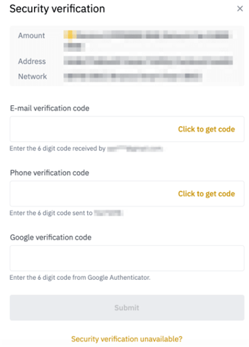 8. 仔细检查您的提现代币、数量和地址。然后,验证您的提现请求并点击【提交】。