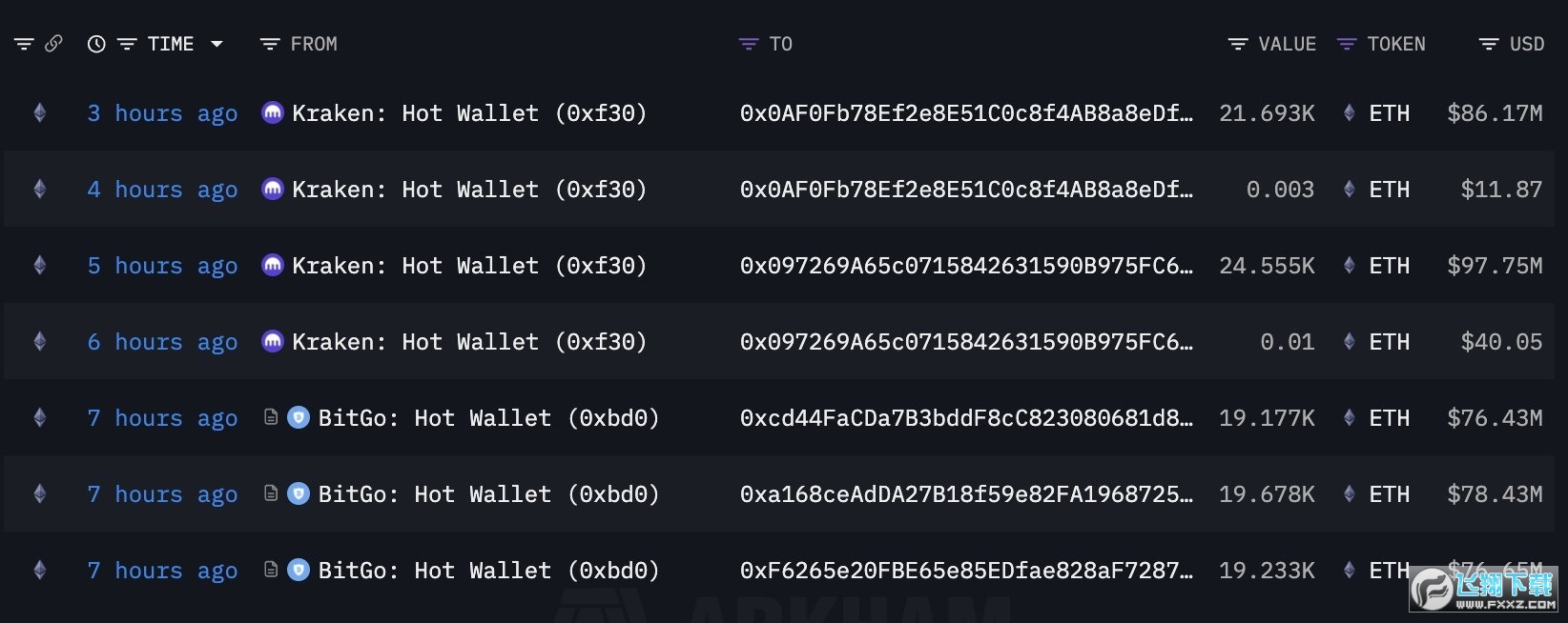 区块链情报公司Arkham同意这一发现,表示3个新的巨鲸钱包刚刚各自收购了7500万美元的ETH。"收购模式与BitMine从BitGo收购ETH的模式相符,"他们说。