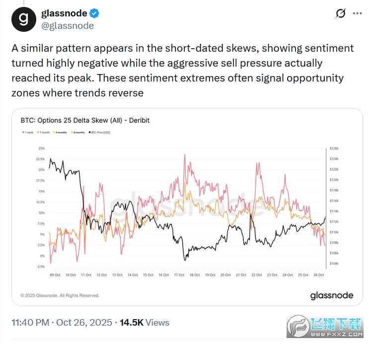 在周日的X帖子中,Glassnode暗示趋势逆转正在酝酿,因为抛售压力和负面情绪似乎已经达到极端峰值。
