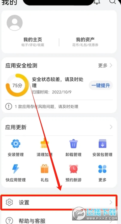 如果纯净模式没有办法关闭,也可以在我们的应用市场里面找到我的,选择【设置】。