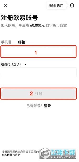 1,打开欧易App,点击页面上方【立即登录/注册】,进入注册页面;输入【手机号】或者【邮箱】--【注册】--【输入验证码】;