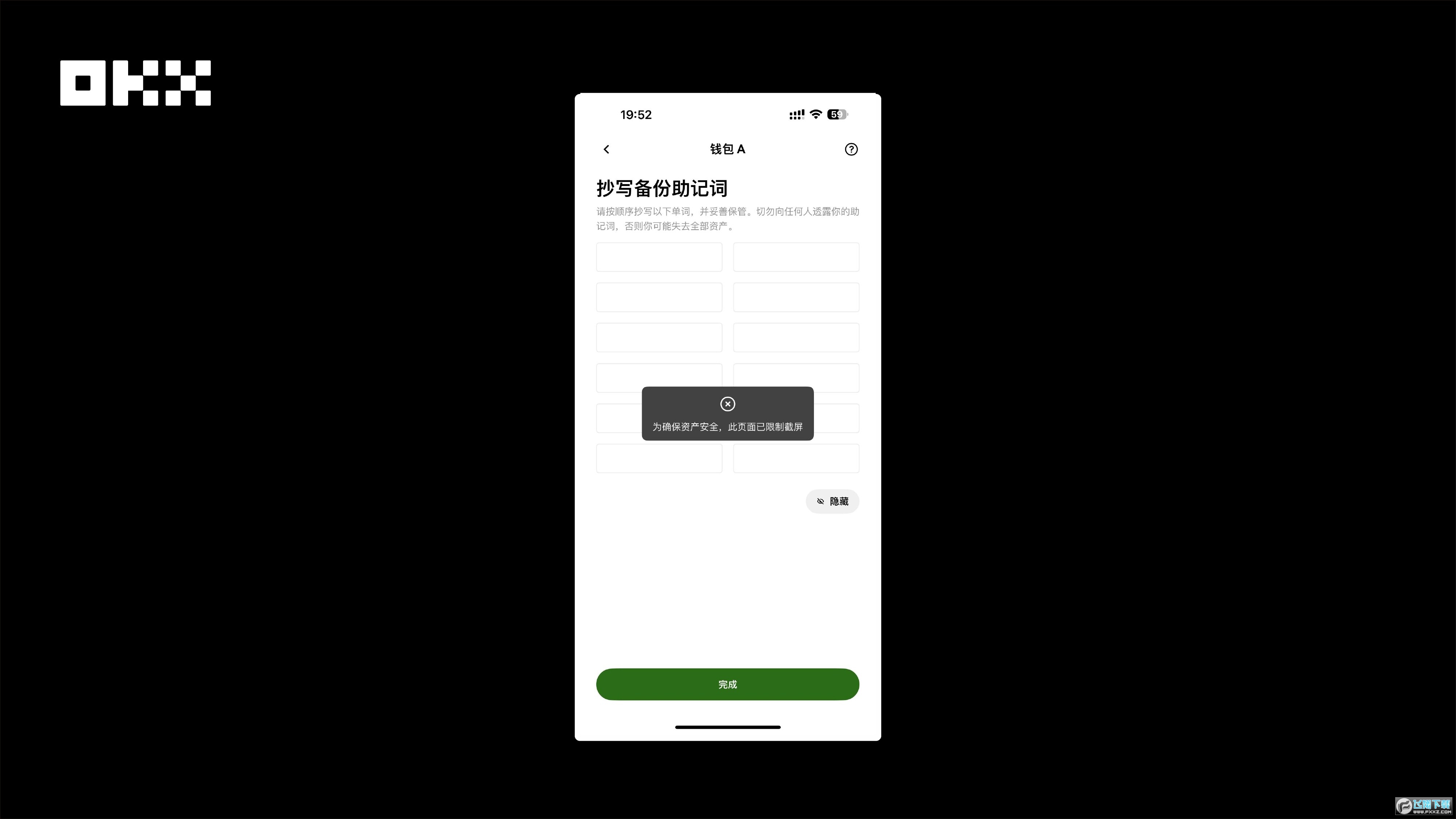 图片:OKX Wallet禁止在私钥和助记词页面截屏