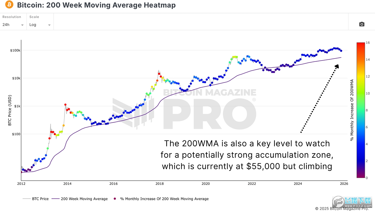 图 3:200WMA 也暗示 $55k 是一个积累点,尽管它每天都在上涨。