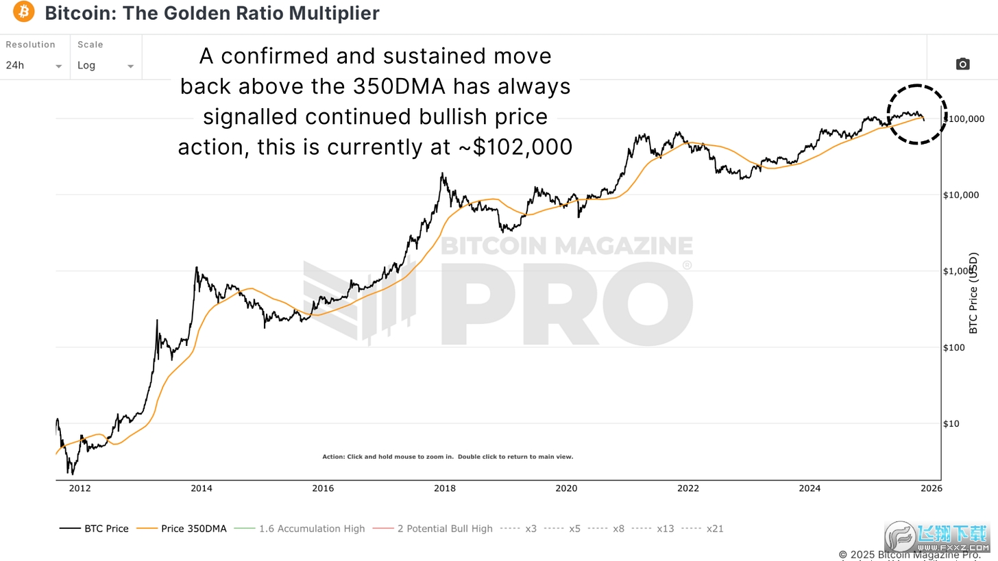 图 6:BTC 必须出自 350 日移动平均线的持续收复,才能回复看涨趋势。