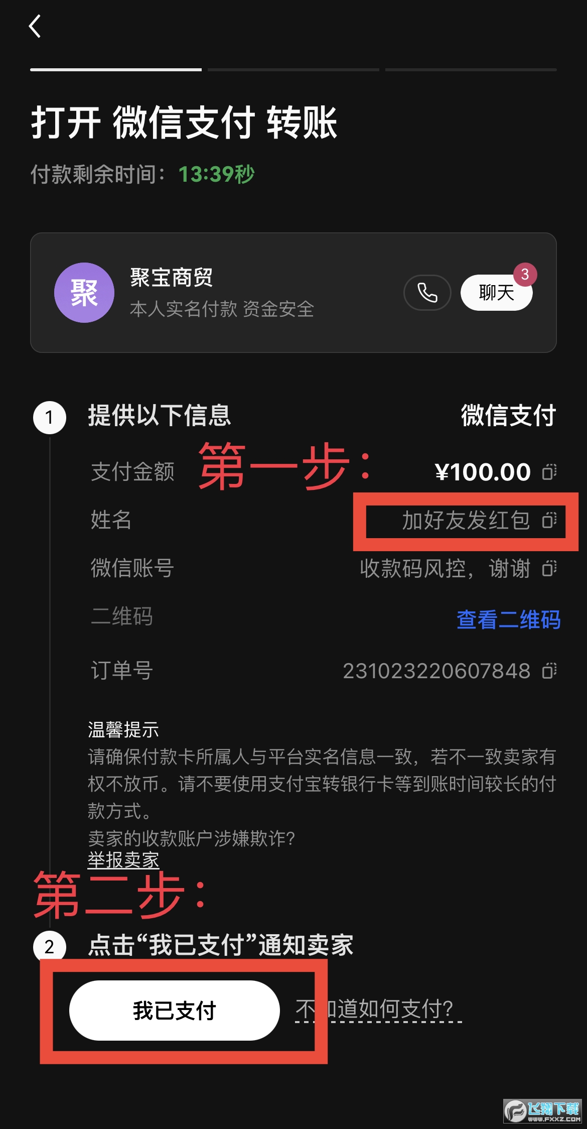 进入付款页面,首先需要确认我们购买的数量是否有误,确认无误后。按照下面的卖家提供的转账信息加对方好友给卖家进行转账即可。转账成功后,点击页面下方的“我已支付”,通知对方。