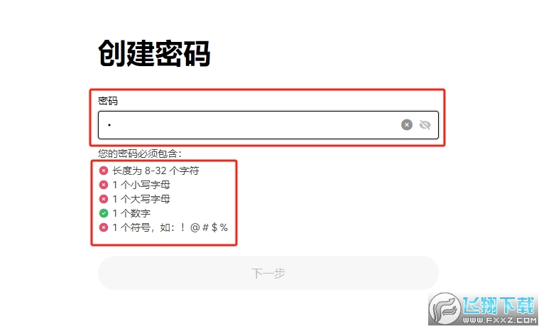 5.按照页面提示要求,设置账户密码,点击【下一步】按钮。即可完成账户注册。