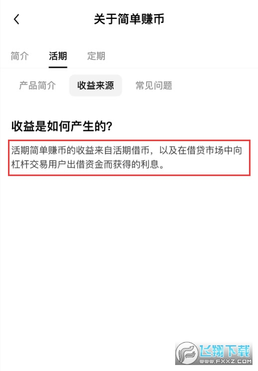 11、我们进入到简单赚币的介绍页面,它的收益来源就是欧易的借贷功能。我们简单赚币的理财收益,其实就是来自于借贷的利息。