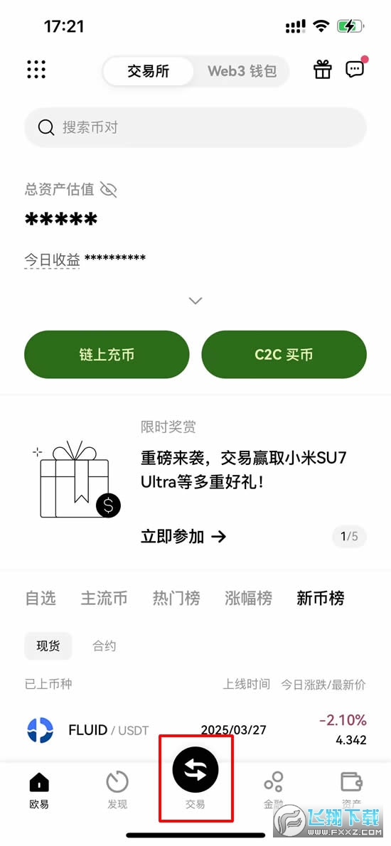 我首先先来演示一下,如何使用欧易的简单赚币功能。
