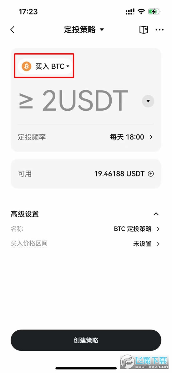5、单次定投金额可以是50USDT。然后点击下方的【创建策略】就可以创建成功了。