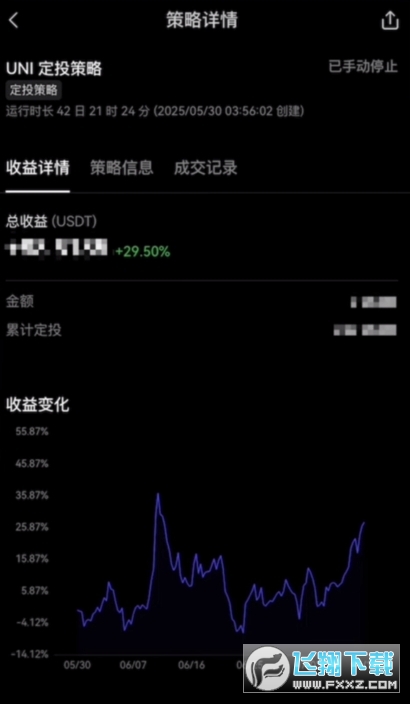 我前一阵子也创建过一个Uni代币的定投策略。Uni是以太坊链上的Defi龙头项目,最近涨得非常不错。我是一个月之前开始定投的,目前收益率已经有30%了。对于加密货币新手来说,选择好正确的投资标的,并坚持定投,长期收益率一定不会差。欧易的定投策略功能就可以很好的满足我们的定投需求,操作起来非常简单方便。