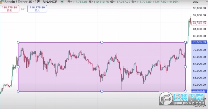 这个时候大家可能会问一个问题,如果说比特币一路向上突破,超过网格上限该怎么办呢?这其实就是现货网格局限的一个点,假设出现单边上涨的情况,那么网格就会 一直执行卖出的策略,相当于我们会踏空后续的上涨行情,出现单边下跌也是类似的,相当于我们一直逢低买入比特币现货。如果短时间内,比特币不出现反弹上涨的话,我们就会一直持有现货,收益率也会变差。所以说现货网格最适用于横盘震荡的行情,比如说去年3月份到10月份,比特币一直在5万美元到7万美元之间,横盘整理。