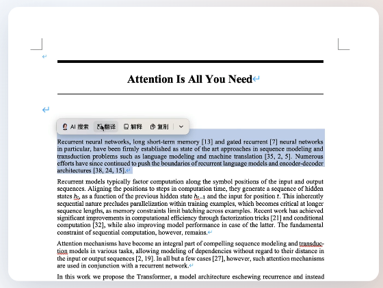 通过Al伴读 PDF等文档,不仅为你提供中英翻译对照,还能一键帮你总结全文内容。