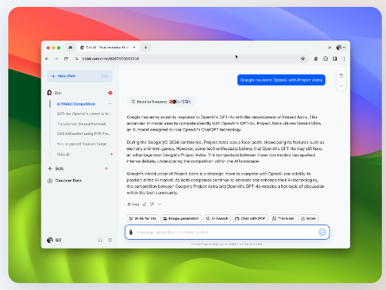 选择文本后,她可以为你提供各种Al辅助功能,如搜索、翻译、解释、总结等。