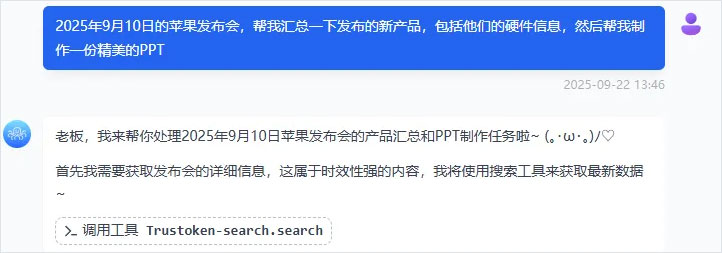 比如苹果的发布会,小编让它帮我汇总发布苹果发布会上的产品,并制作成PPT。
