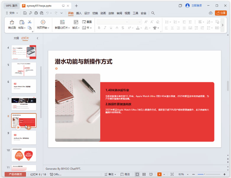 它在检索最新的信息后,大概两分钟左右,一份精美的PPT就制作好了。