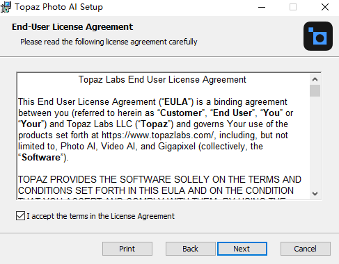 1、运行 TopazPhotoAI-4.0.1.msi 进行安装;