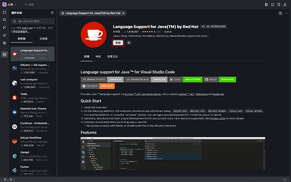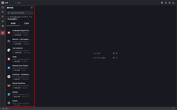 你可以从 Trae 或 VS Code 的插件市场安装插件,这里介绍从 Trae 的插件市场安装方式。