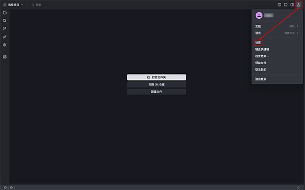 1、登录软件后在界面右上角,点击头像。在快捷菜单中,选择 设置。