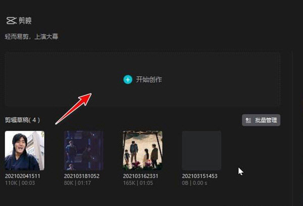 进入剪映pc版,点击开始创作。