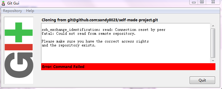 但是即使按照以上的步骤,仍然会出现以下问题,此时可能的问题是 若服务器是公司的,可能是被公司限制出了,此时需要使用 Git Bash工具进行操作。