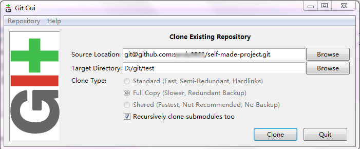 以下为使用 Git GUI 克隆远程仓库的详细步骤,操作简单易懂,适合新手入门: