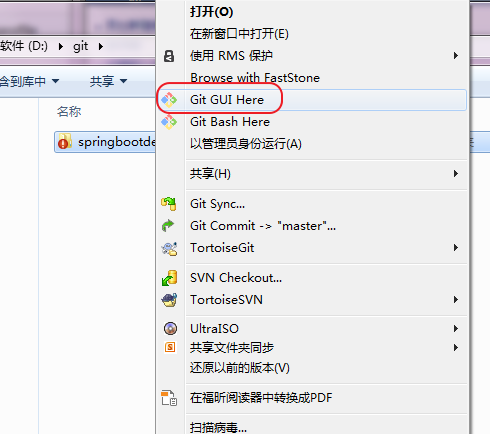 在设定为 git 的目录中右键,打开 Git GUI 软件