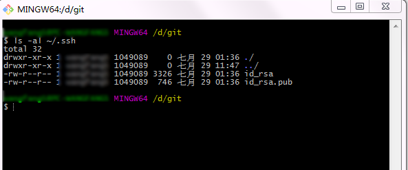 执行 ls -al ~/.ssh 命令,如下图